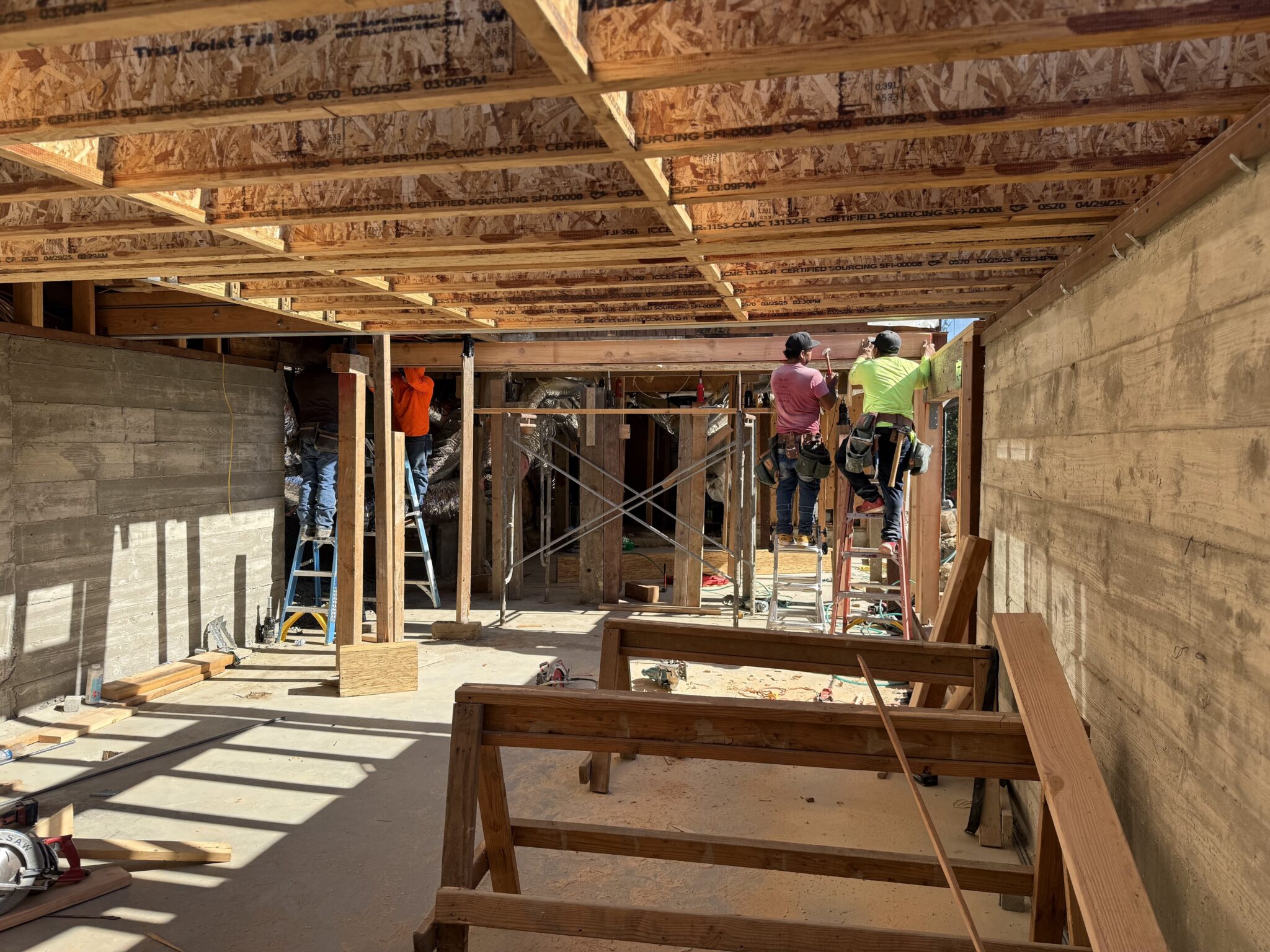 - Framing of new roof and floor structures